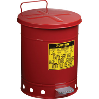 符合美國(guó)OSHA 要求的油漬廢品罐是在使用浸有溶劑的布和抹布時(shí)的必備品。浸有溶劑、稀釋劑、亞麻籽油、可燃粘合劑和其他易燃液體的抹布和布如果隨意拋棄,將有極大的火災(zāi)隱患。經(jīng)過(guò)專門設(shè)計(jì)的蓋子打開(kāi)的角度不超過(guò)60度,不使用時(shí)將保持關(guān)閉,將內(nèi)容物與火源隔離,限制氧氣量,因此可有效地消除自燃隱患。圓形的構(gòu)造和加高的罐底可促進(jìn)罐體周圍的空氣流通,從而達(dá)到散熱以及減少因水分聚集而生銹的目的。耐用的鋼制構(gòu)造采用耐化學(xué)腐蝕的粉末涂料涂飾。