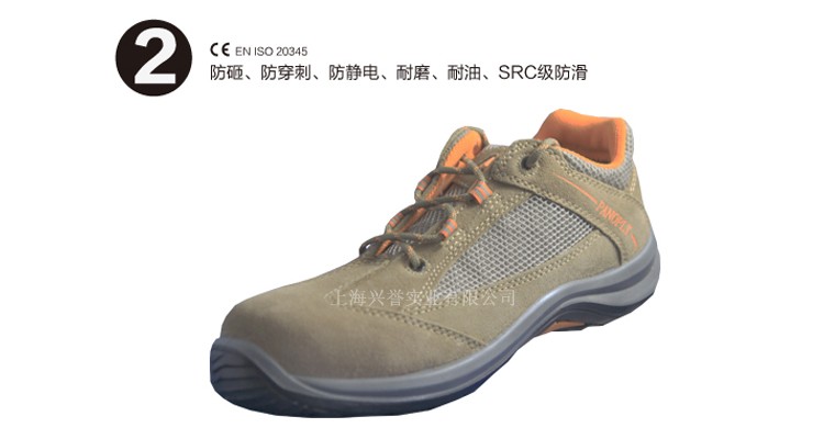 4.非金屬合成材料保護(hù)包頭和防穿刺中底,防砸、防穿刺、防靜電、耐磨、耐油、SRC級(jí)防滑