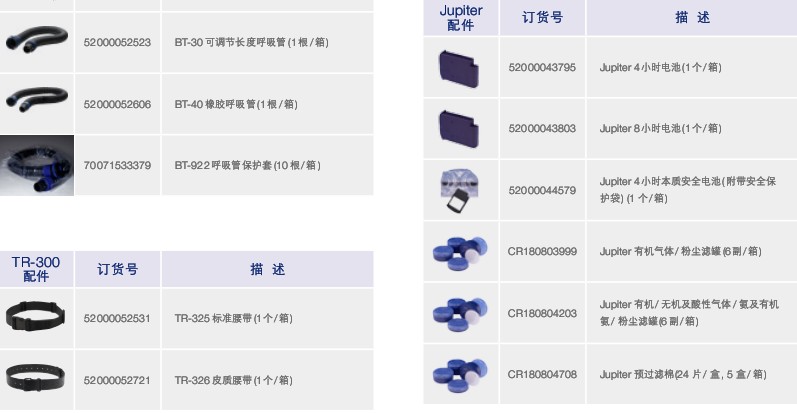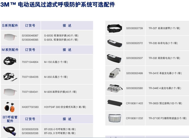 套裝包含:TR-315E 送風電機套件( 包括TR-302E 送風電機、顆粒物過濾盒、預過濾棉、標準腰帶、高效能電池、單座充電器、BT-30 可調(diào)節(jié)長度呼吸管各一個)