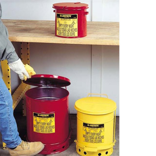 符合美國OSHA 要求的油漬廢品罐是在使用浸有溶劑的布和抹布時的必備品。浸有溶劑、稀釋劑、亞麻籽油、可燃粘合劑和其他易燃液體的抹布和布如果隨意拋棄,將有極大的火災(zāi)隱患。經(jīng)過專門設(shè)計的蓋子打開的角度不超過60度,不使用時將保持關(guān)閉,將內(nèi)容物與火源隔離,限制氧氣量,因此可有效地消除自燃隱患。圓形的構(gòu)造和加高的罐底可促進罐體周圍的空氣流通,從而達到散熱以及減少因水分聚集而生銹的目的。耐用的鋼制構(gòu)造采用耐化學(xué)腐蝕的粉末涂料涂飾。