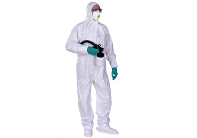限次性無(wú)紡布連體服,70%聚丙烯+30%聚乙烯復(fù)合材料,彈性兜帽、袖口、腳踝口,防粉塵微粒,防輕度化學(xué)液體滴落,