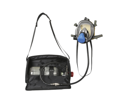 產品組成:逃生呼吸器由碳纖維瓶、減壓閥、供氣閥、面罩、帶表氣瓶閥、阻燃背包等組成。