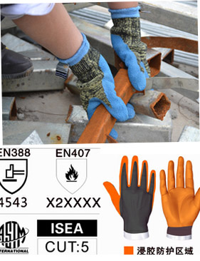 產(chǎn)品名稱:L22655藍(lán)色乳膠皺紋防切割手套