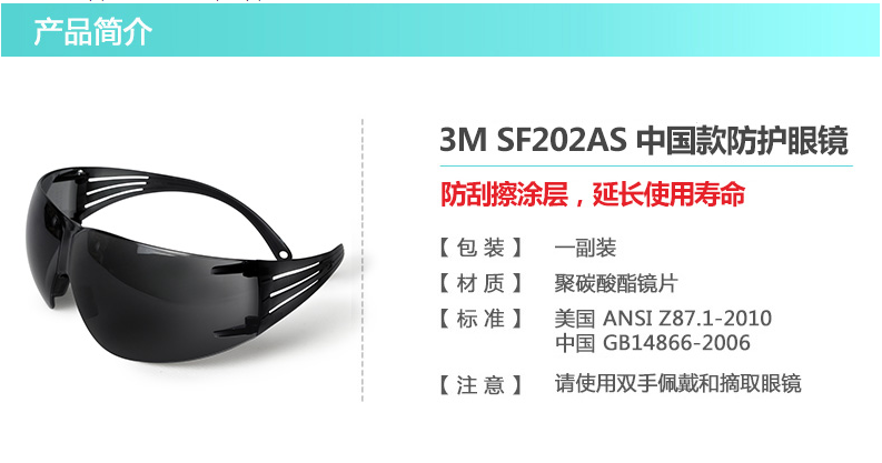 產(chǎn)品名稱:3M SF202AS灰色防刮擦防護(hù)眼鏡