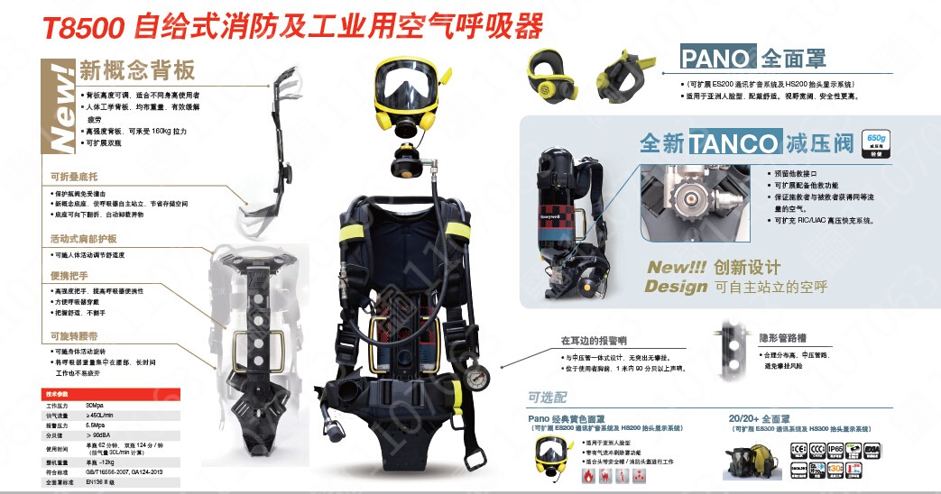 T8500 系列 SCBA2005HT:T8500 T8500 他救呼吸器 Pano面罩/6.8L Luxfer氣瓶
