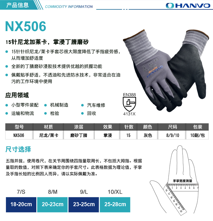 產(chǎn)品名稱:恒輝NX506 掌浸丁腈磨砂手套