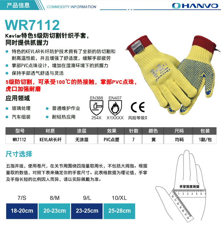 產(chǎn)品名稱:恒輝W7112 KEVLAR防割5級手套