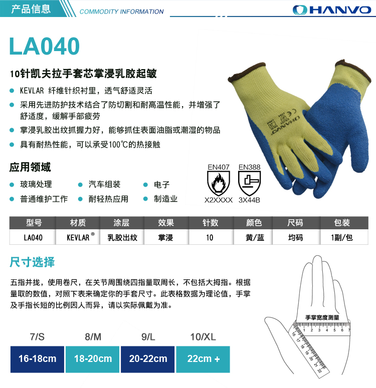 掌浸乳膠出紋抓握力好,能夠抓住表面油脂或潮濕的物品,大拇全浸(LB040)有更好的防護作用