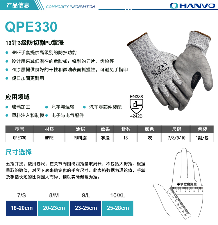 產(chǎn)品名稱:恒輝QPE330 防割手套