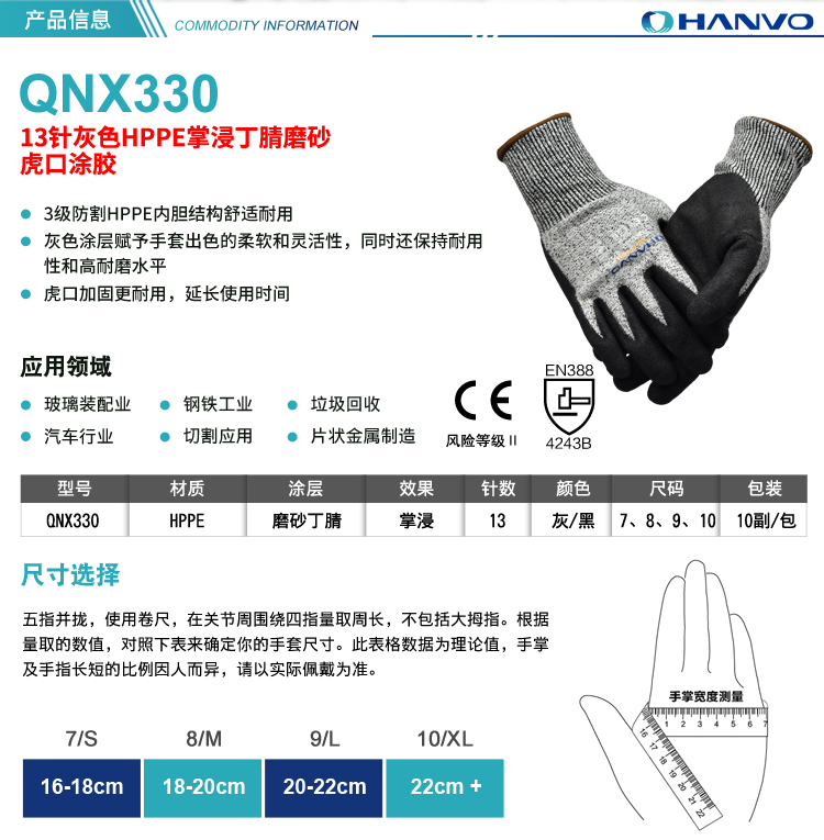 產(chǎn)品名稱(chēng):恒輝QNX330磨砂丁腈3級(jí)防割手套