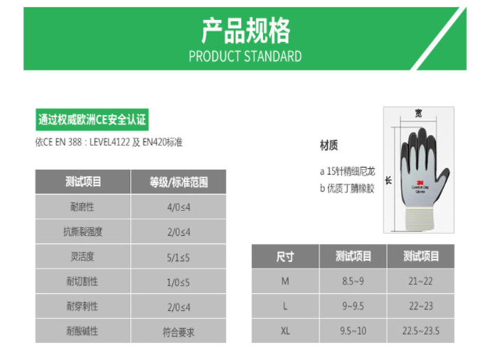 產(chǎn)品名稱:3M WX300923975舒適型防滑耐磨手套綠-L