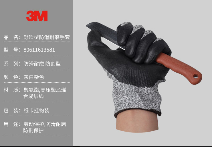 產(chǎn)品名稱:3M 舒適型防滑耐磨手套 防割型 L2 L 手套(貨號(hào)80611613581)