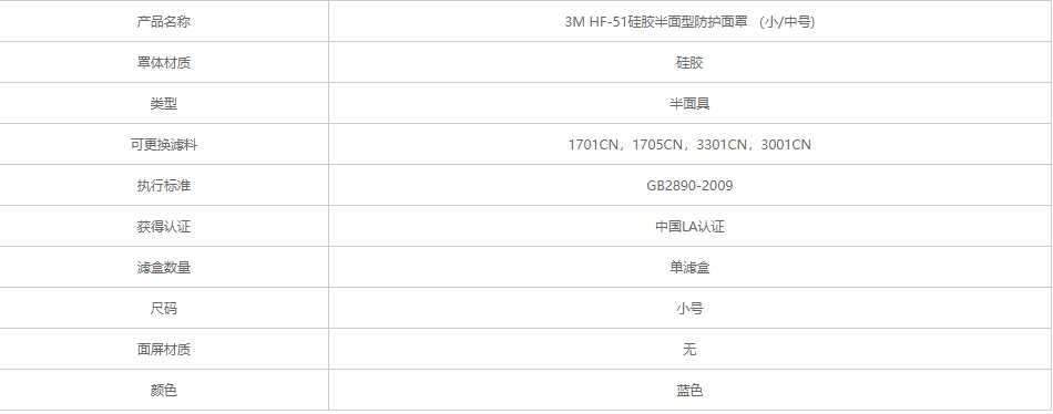 產(chǎn)品名稱:3M HF-51硅膠半面型防護(hù)面罩 (小/中號)