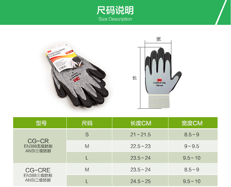 產(chǎn)品名稱:3M 舒適型防滑耐磨手套 防割型 L2 M 手套