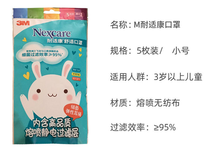 產(chǎn)品名稱:3M耐適康7660+平面舒適口罩小飛機超小號