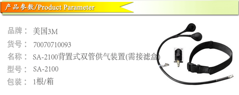 產(chǎn)品名稱:3M SA-2100背置式雙管供氣裝置