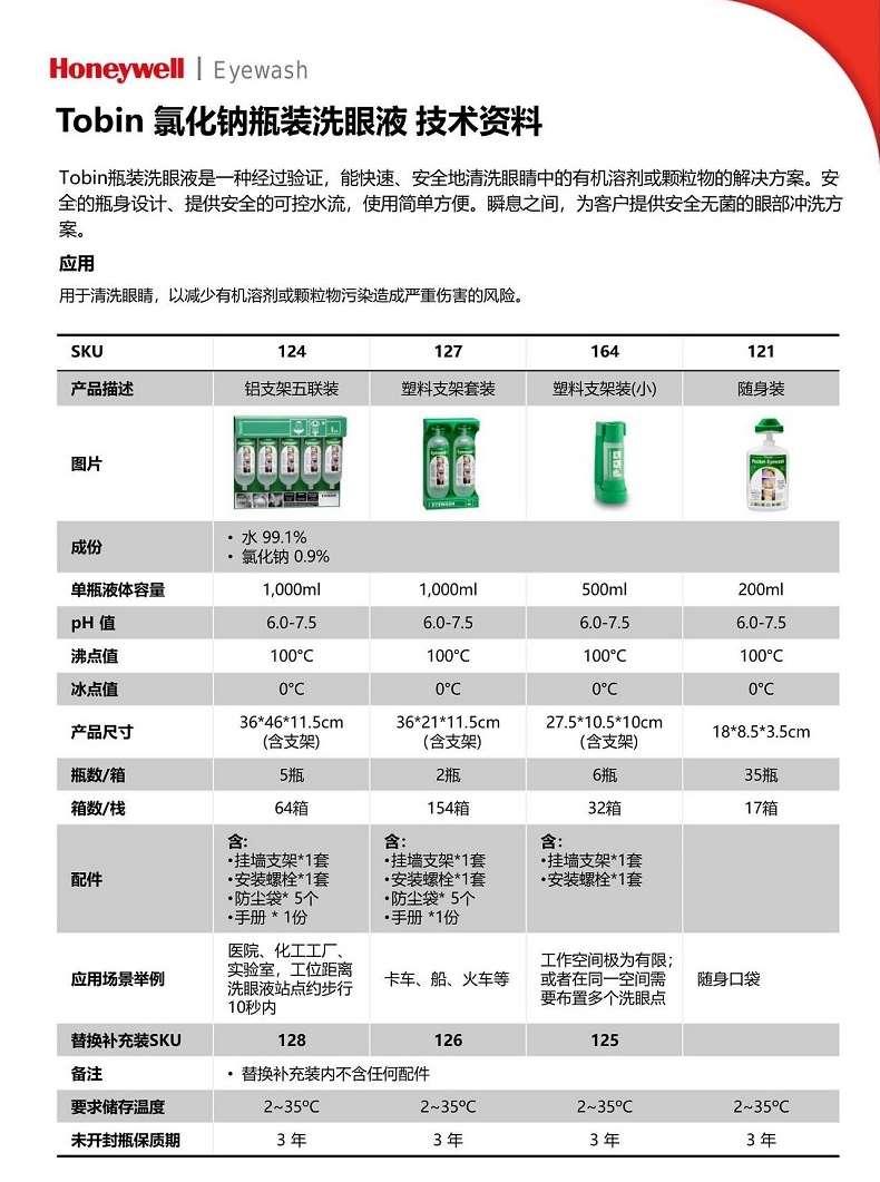 產(chǎn)品名稱:霍尼韋爾125 Tobin洗眼液補(bǔ)充裝 氯化鈉溶液 500ml