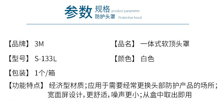 產(chǎn)品名稱:3M S-133S 小/中號白色頭罩(頭圍 50-58厘米)