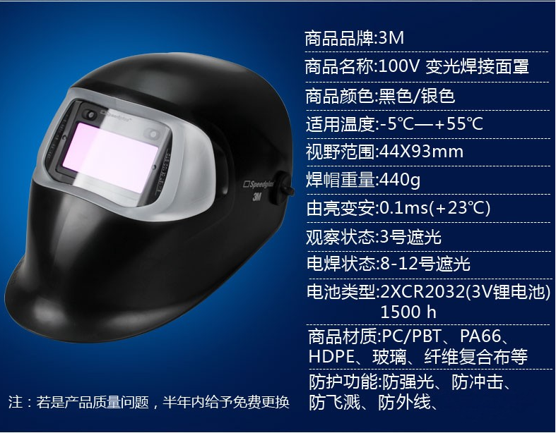 產(chǎn)品名稱:3M 501815 9100X自動(dòng)變光焊接面罩(帶邊窗)1個(gè)/箱