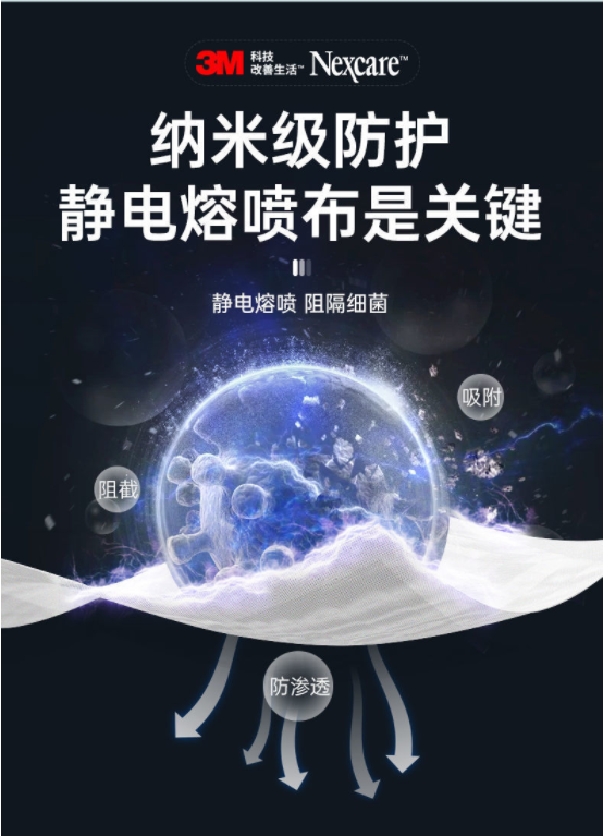 納米級(jí)防護(hù),靜電熔噴,阻隔細(xì)菌;