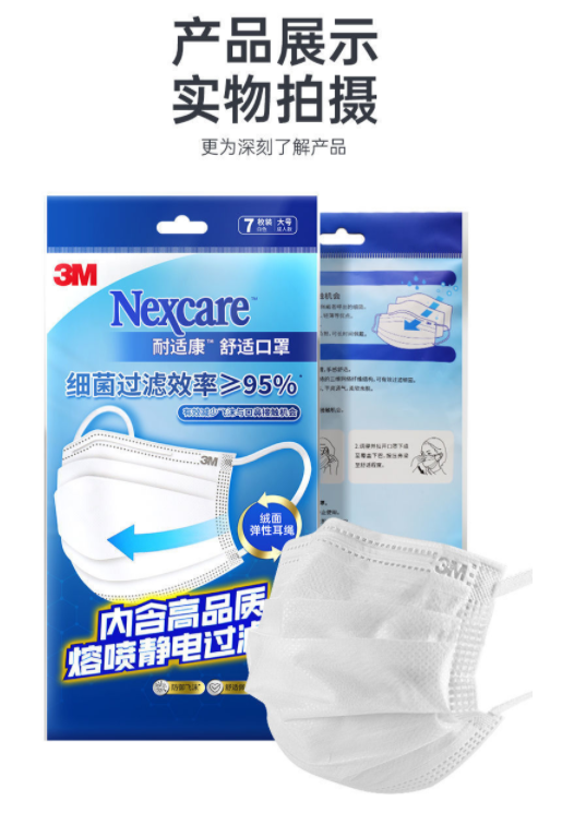 產(chǎn)品名稱(chēng):3M耐適康7660+平面舒適口罩大號(hào)白色