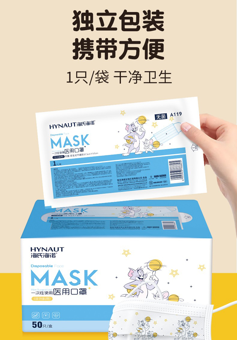產(chǎn)品名稱:海氏海諾一次性口罩三層獨(dú)立包裝(卡通款)